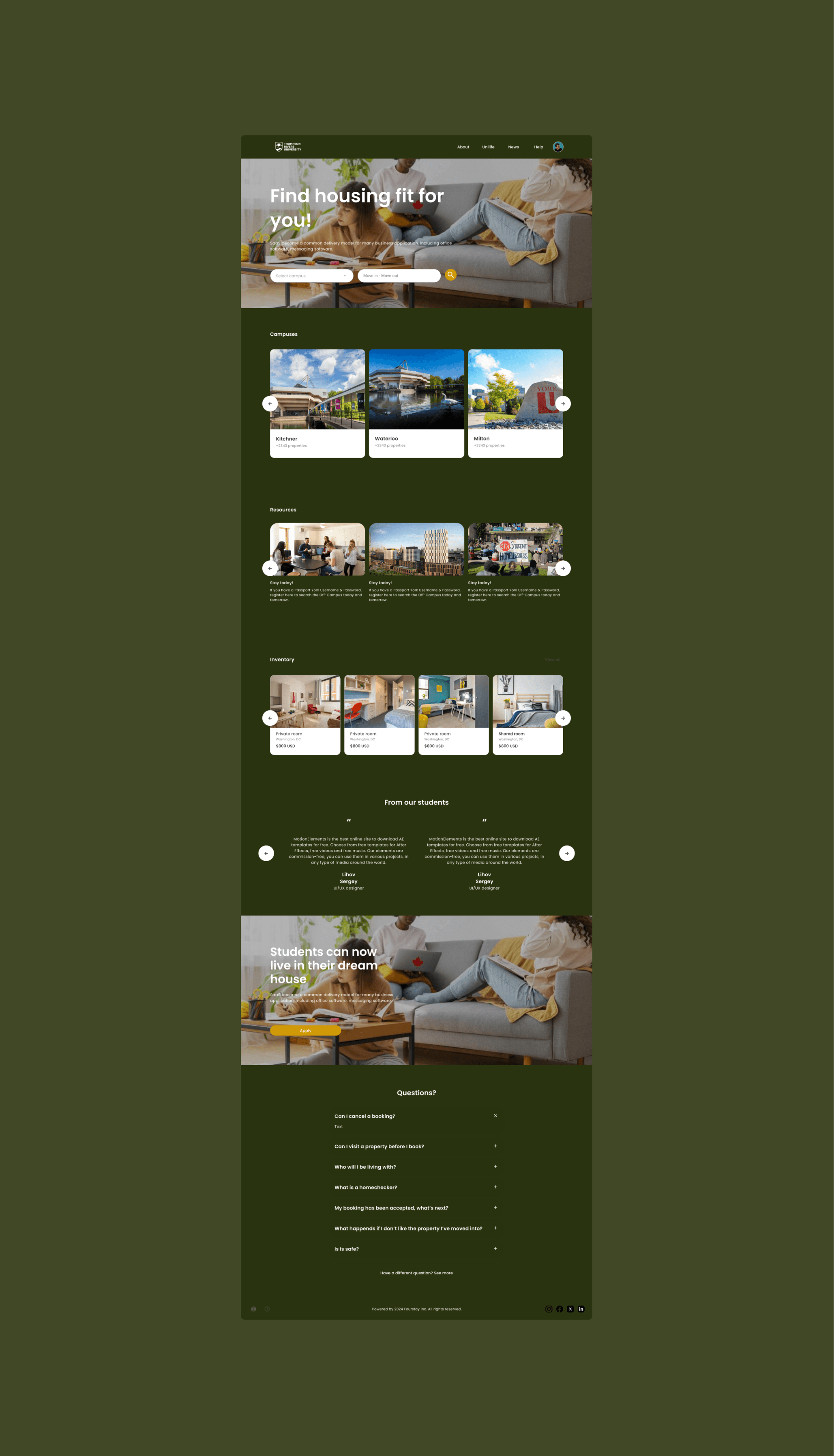 Design an offcampus housing solution that improves engagement, strengths trust, and supports university recruitment goals.
