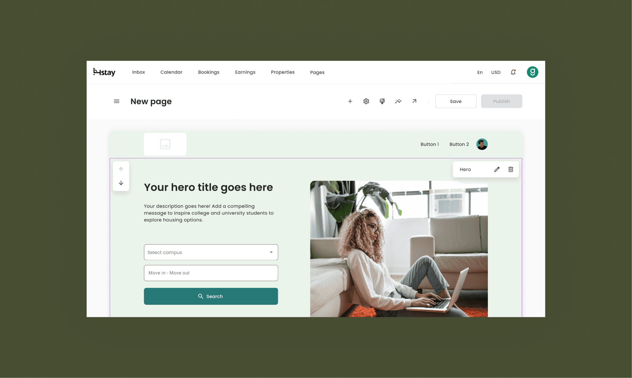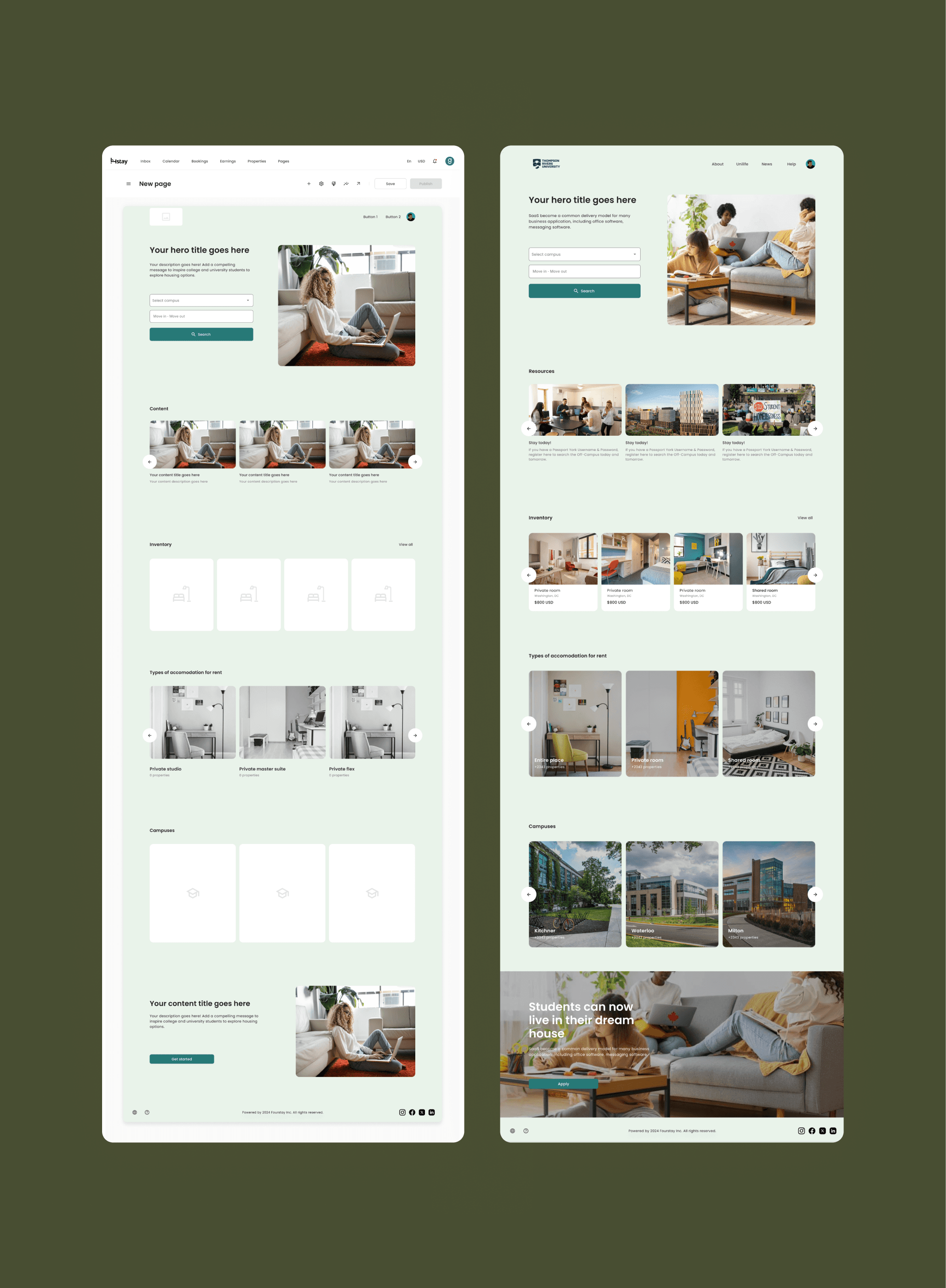 Fourstay uses a website builder to create landing pages, implement search tools and provide housing information.